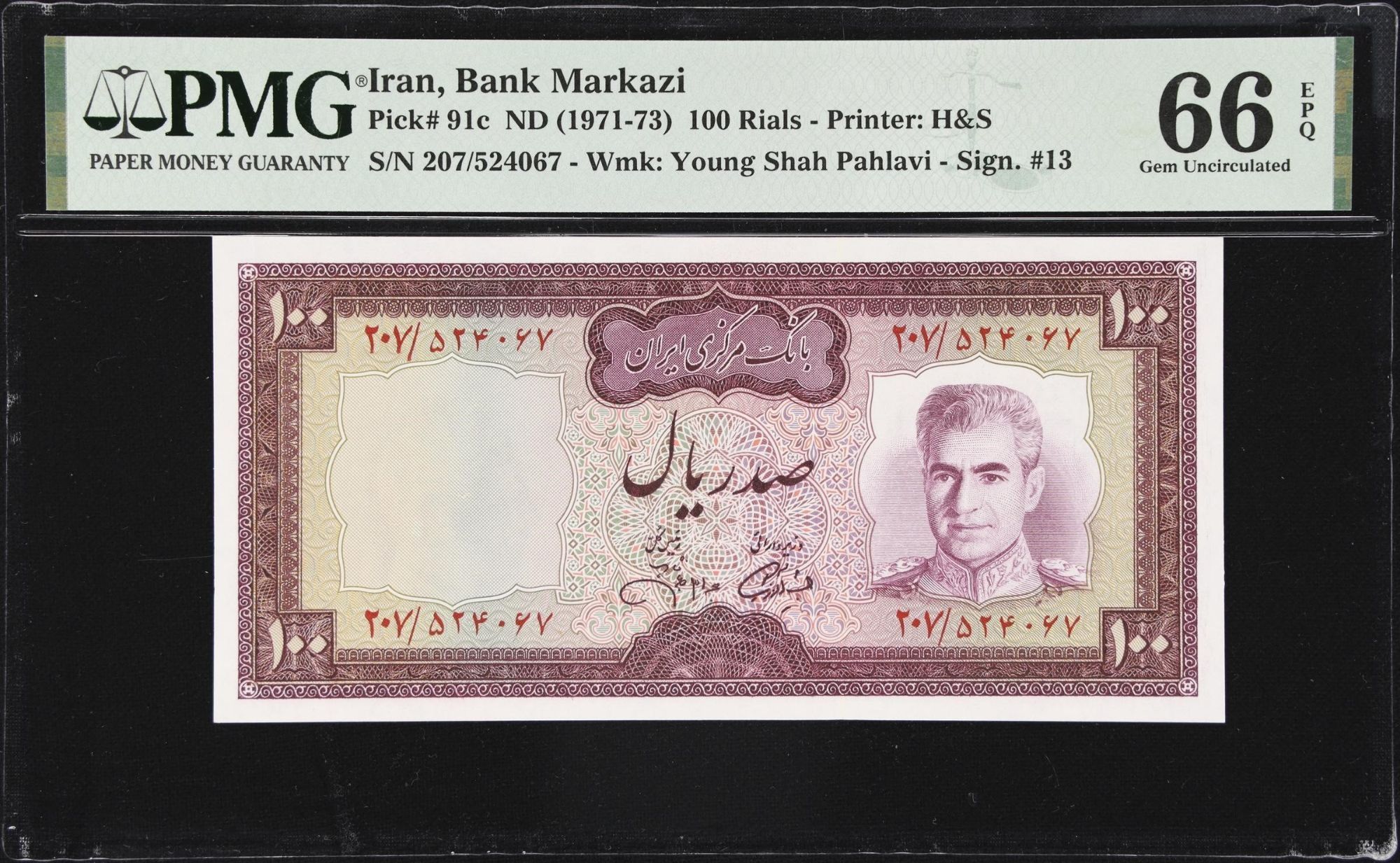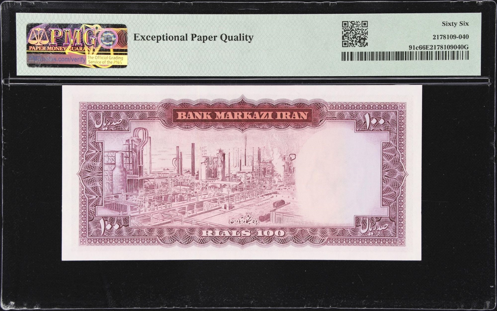 100 Rials Shah Pahlavi , Abadan Refinery,1971-73 SH , PMG 66 Gem UNC (080)