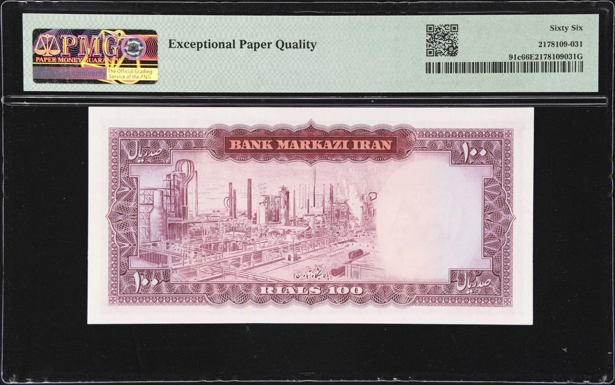 100 Rials Shah Pahlavi , Abadan Refinery,1971-73 SH , PMG 66 Gem UNC (060)