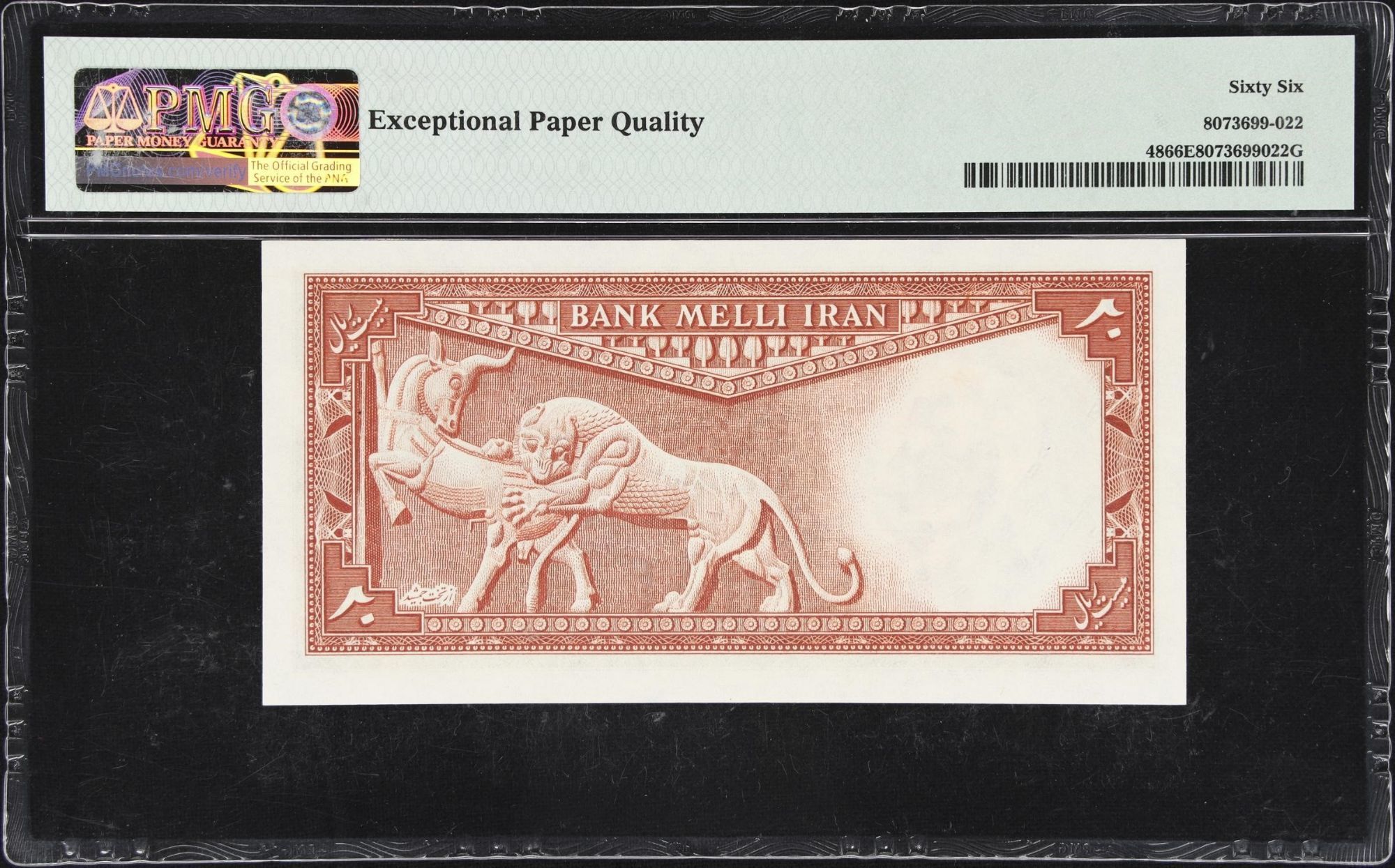 Second portrait of Shah Mohammad Reza Pahlavi in army uniform at right; stylized building and ornate at center.