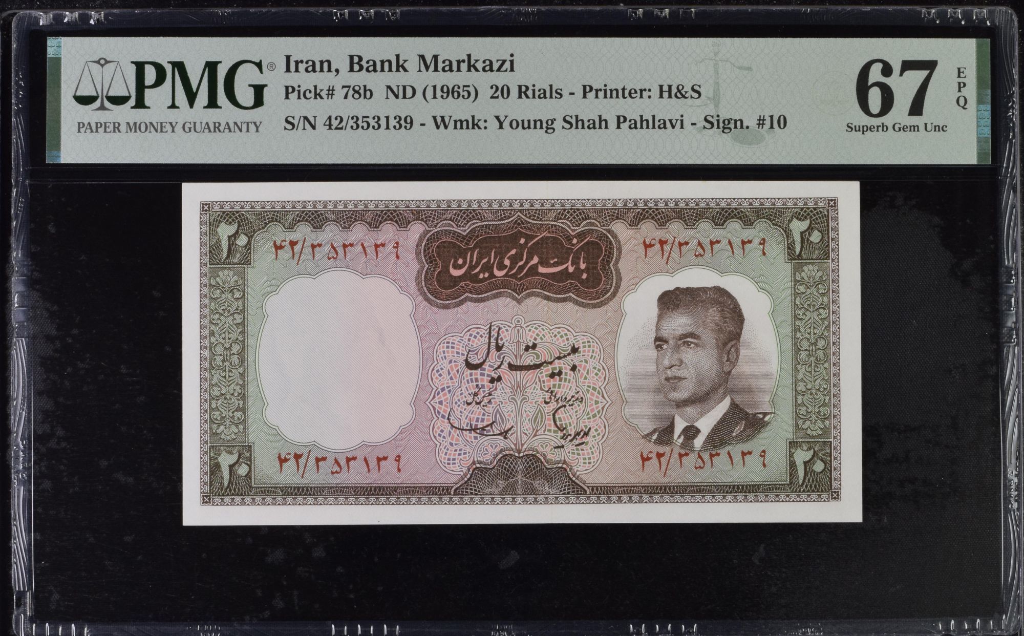 20 Rials Shah M Reza Pahlavi 1965 – PMG 67 SGEM UNC( 139)
