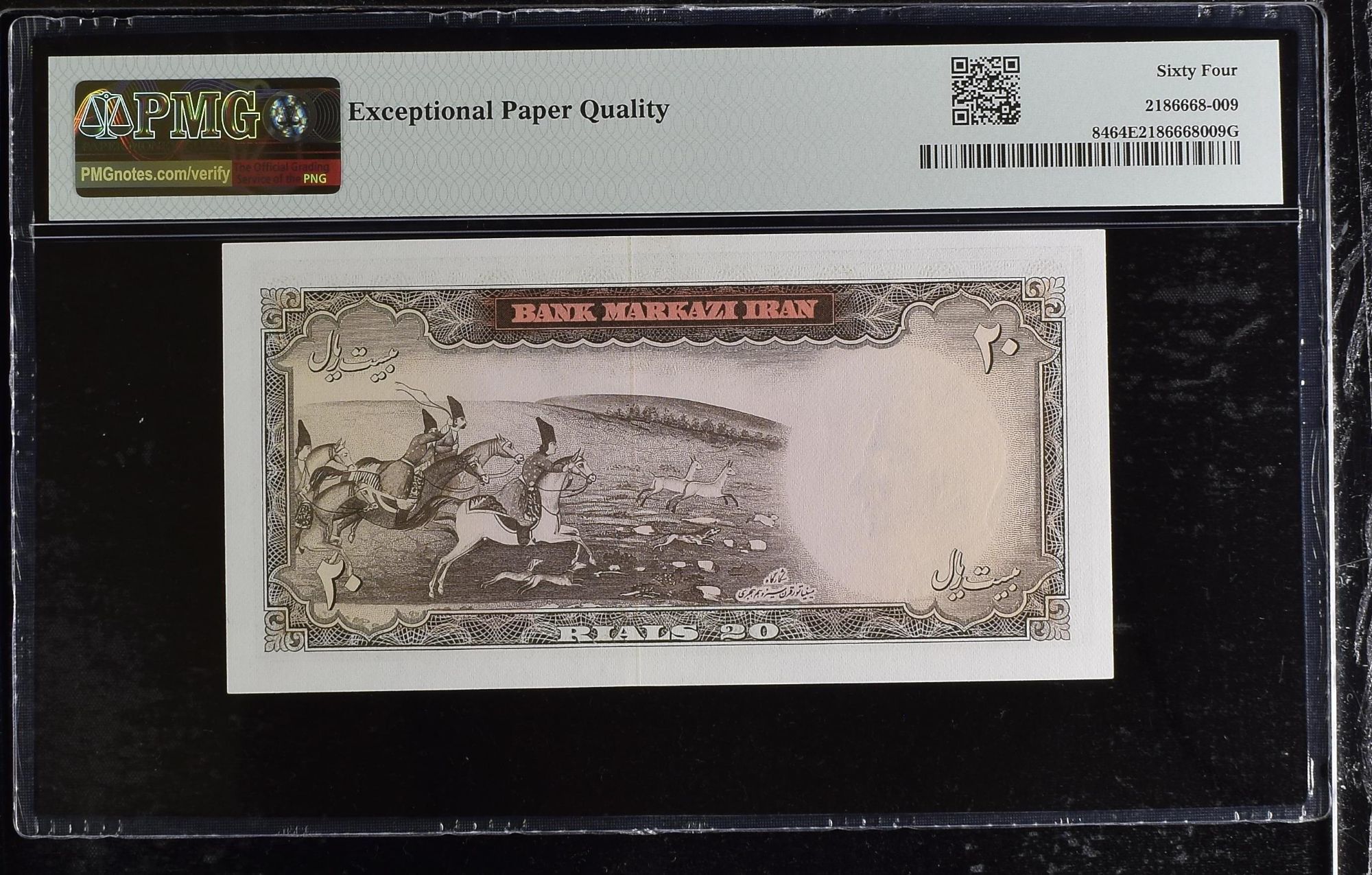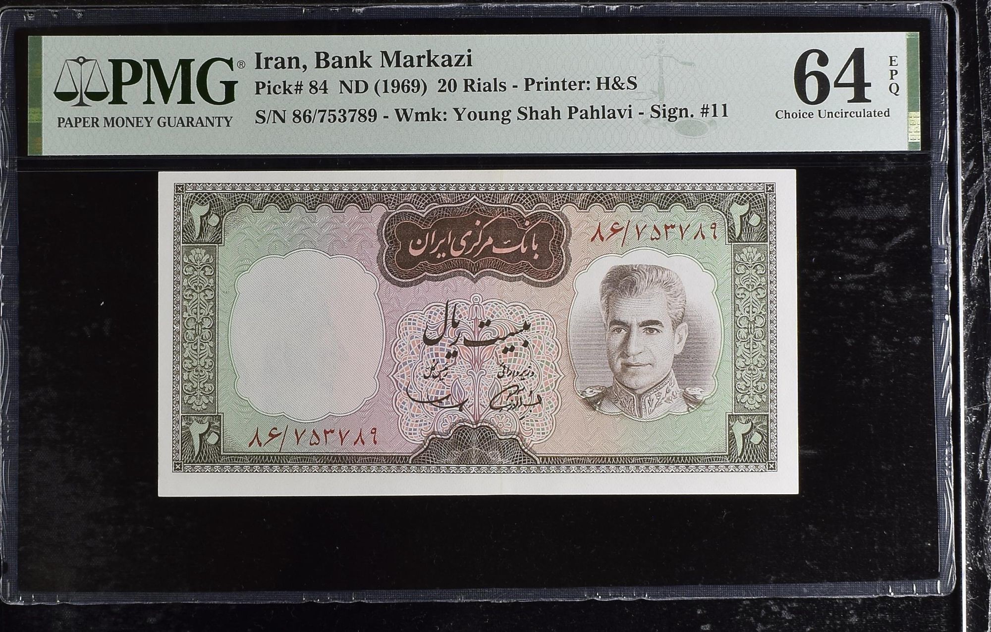 20 Rials Shah Pahlavi Banknote, Old Painting,1969 PMG 66 -Gem UNC (363 )