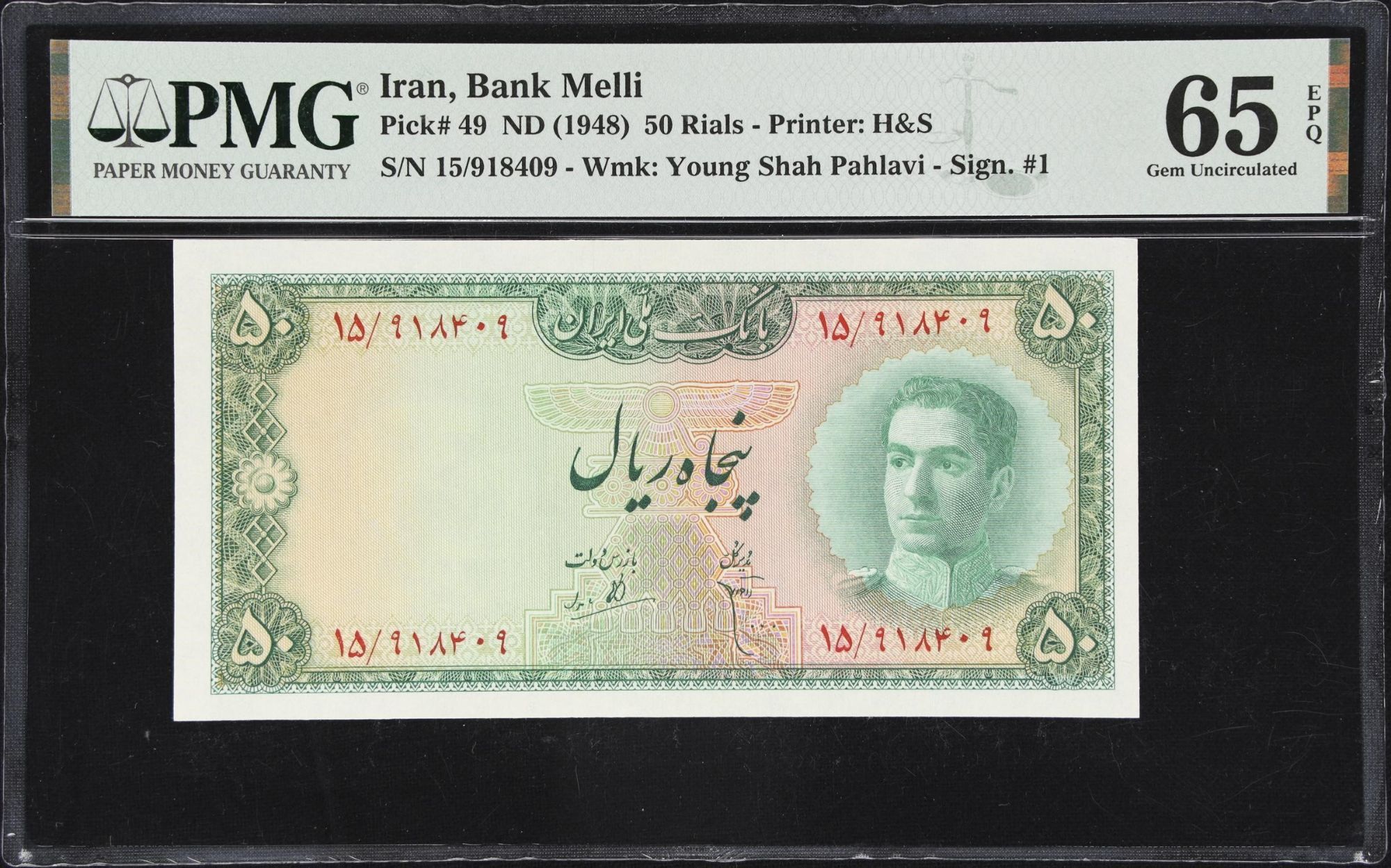 50 Rials Bank Meli 1948 PMG-65 Gem UNC-409