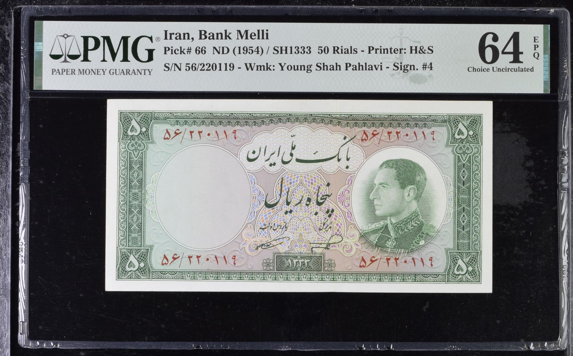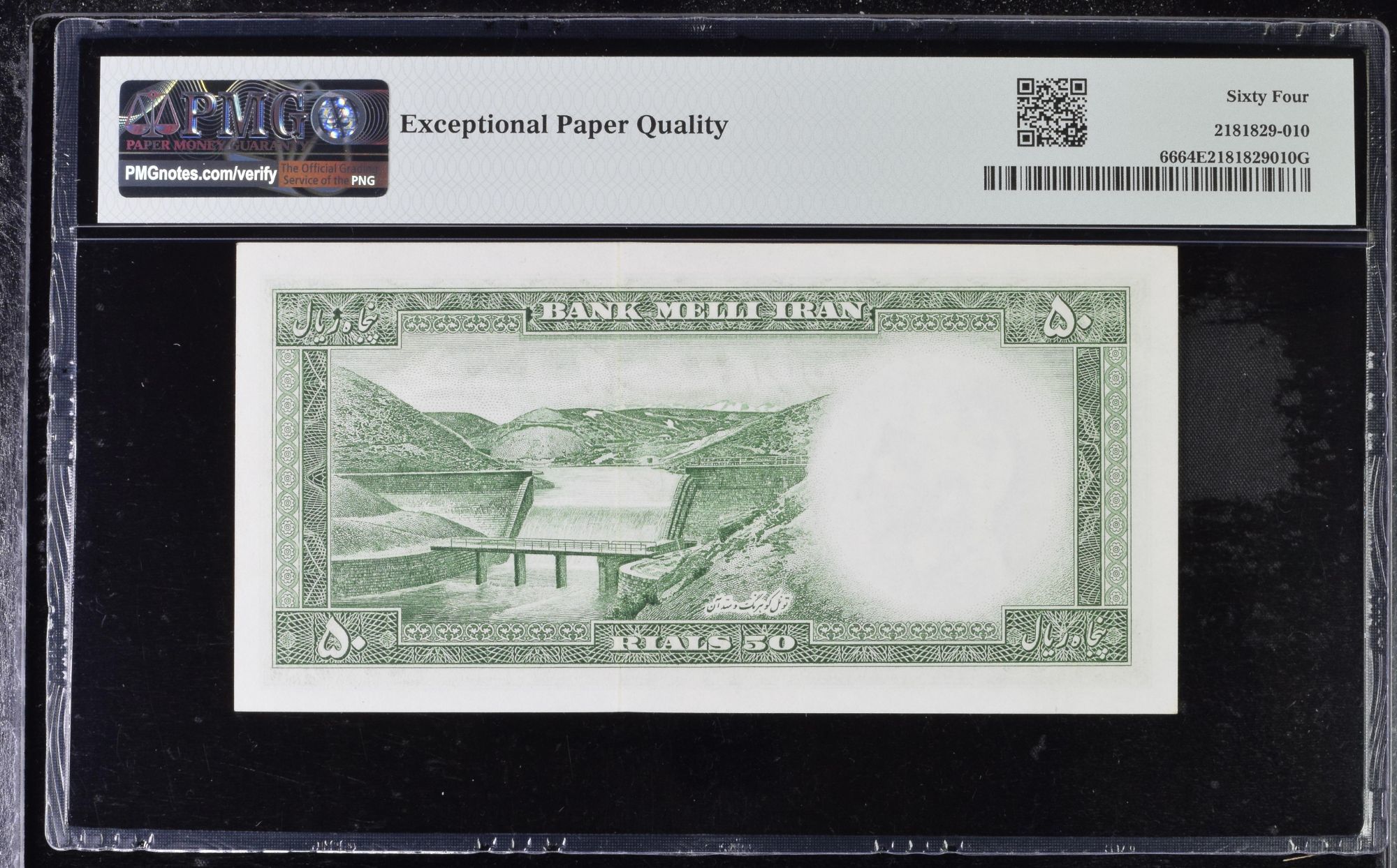 50 Rials , Mohammad Reza Pahlavi Kouhrang Dam,1333 (1954) PMG 64- UNC (119)