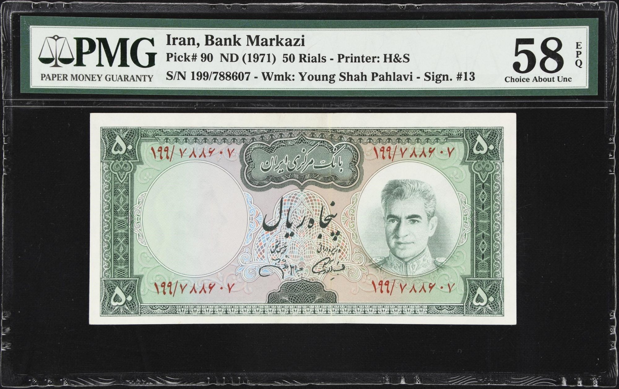 50 Rials Shah Pahlavi , Kouhrang Dam, SH 1348 (1971 ), PMG 58 AUNC ( 607 )