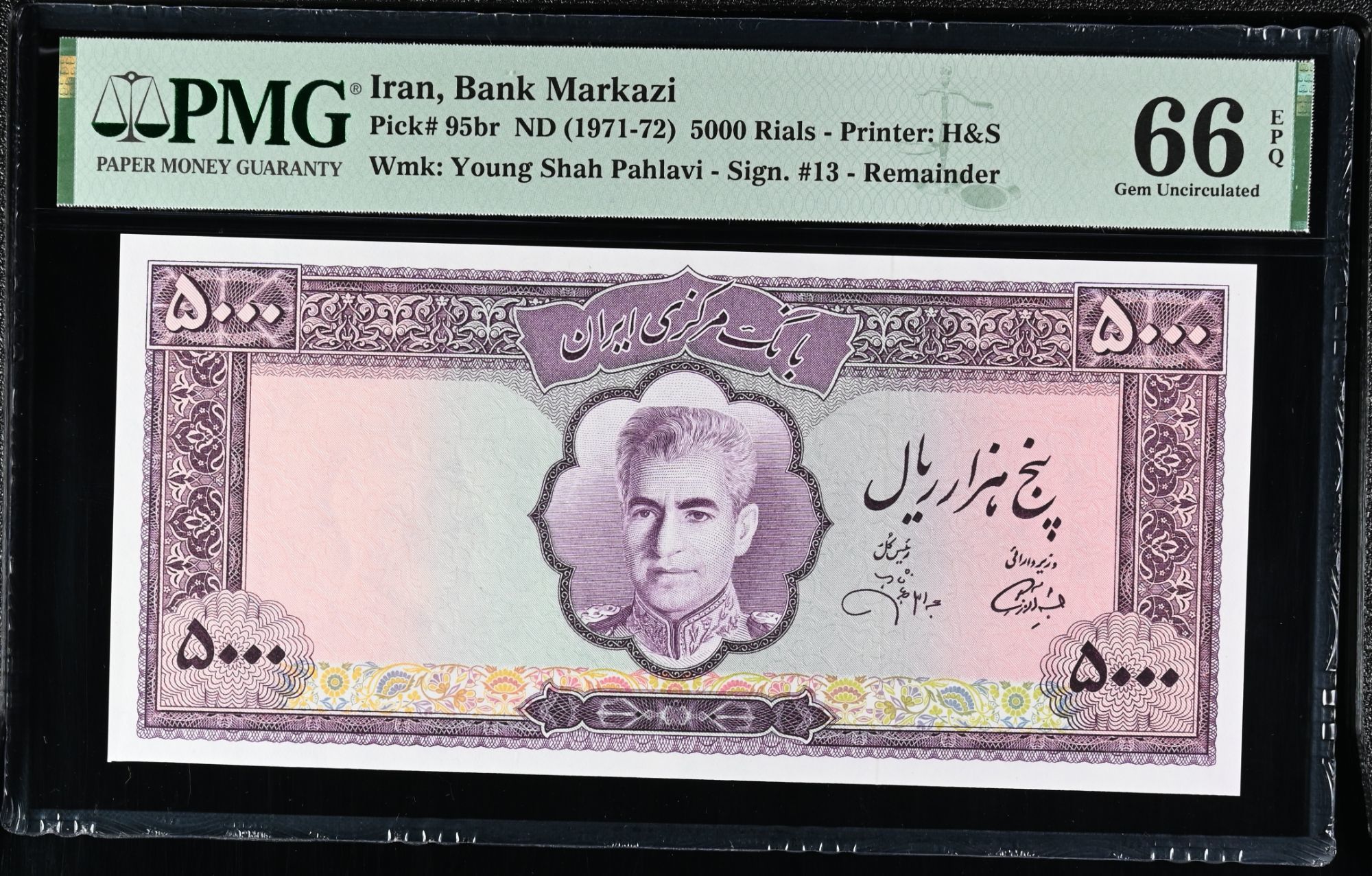 Banknotes of Iran: 5000 Rials banknote of Mohammad Reza Shah Pahlavi era 1971-1972 Issue, Central Bank of Iran.